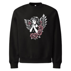Angel and hearphones, tattoo art, Oversized heavyweight sweatshirt