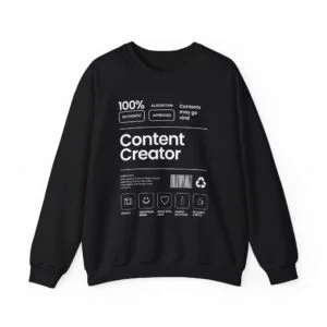 Content Creator Crewneck Sweatshirt — Minimal Tech Graphic Tee for Social Media Makers