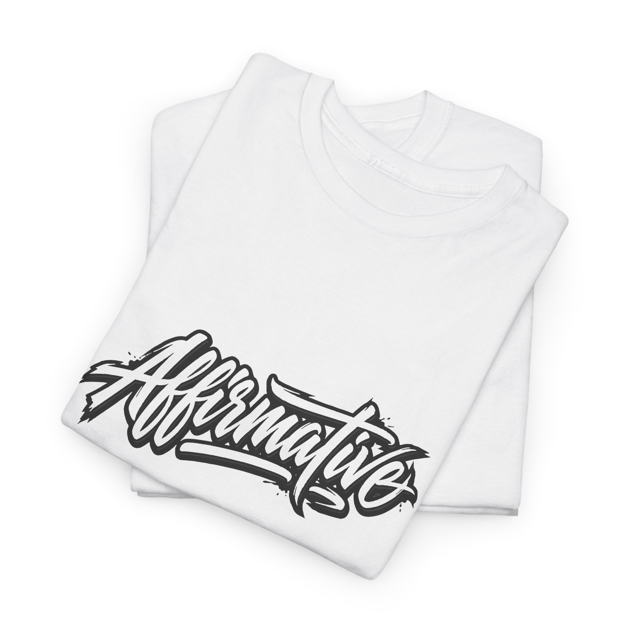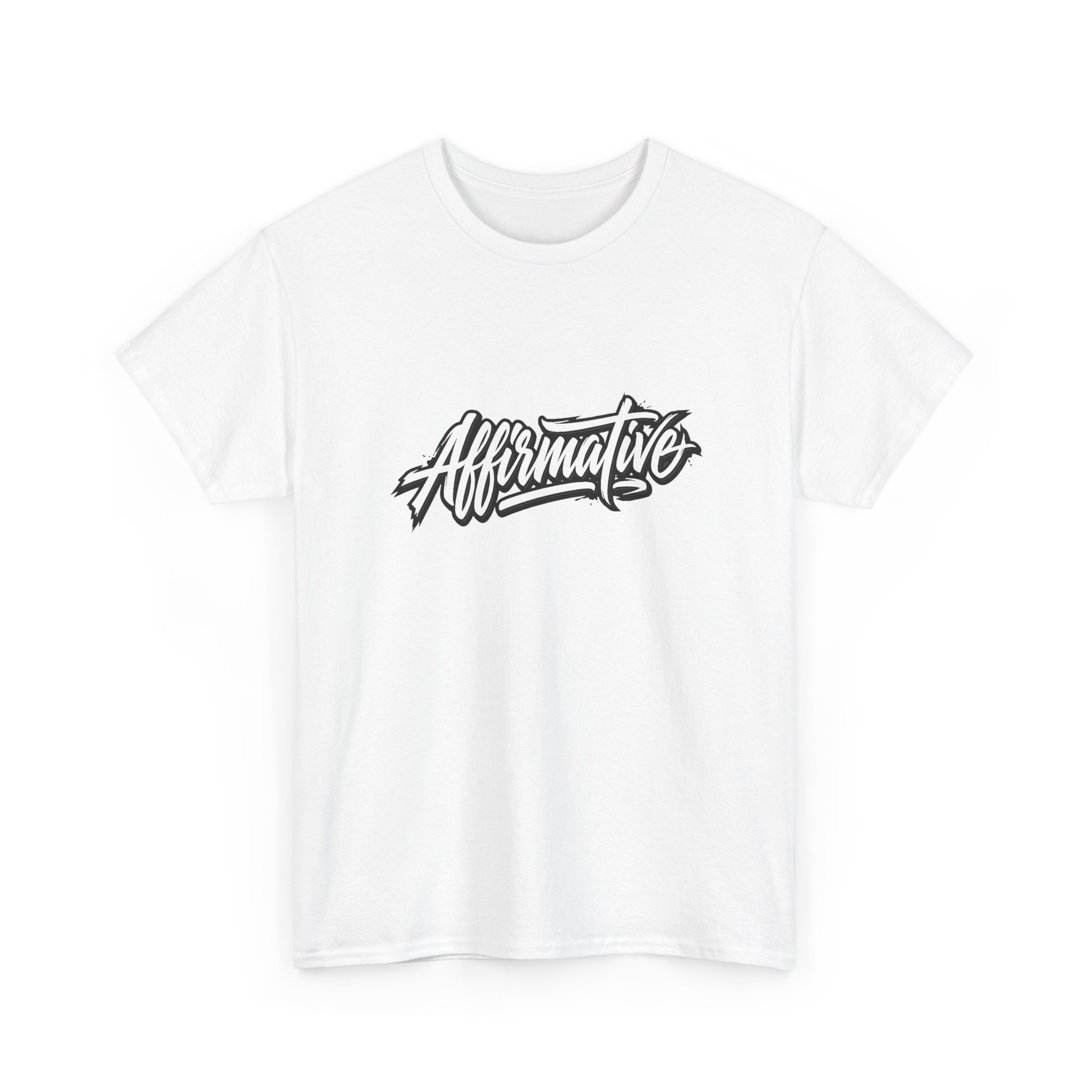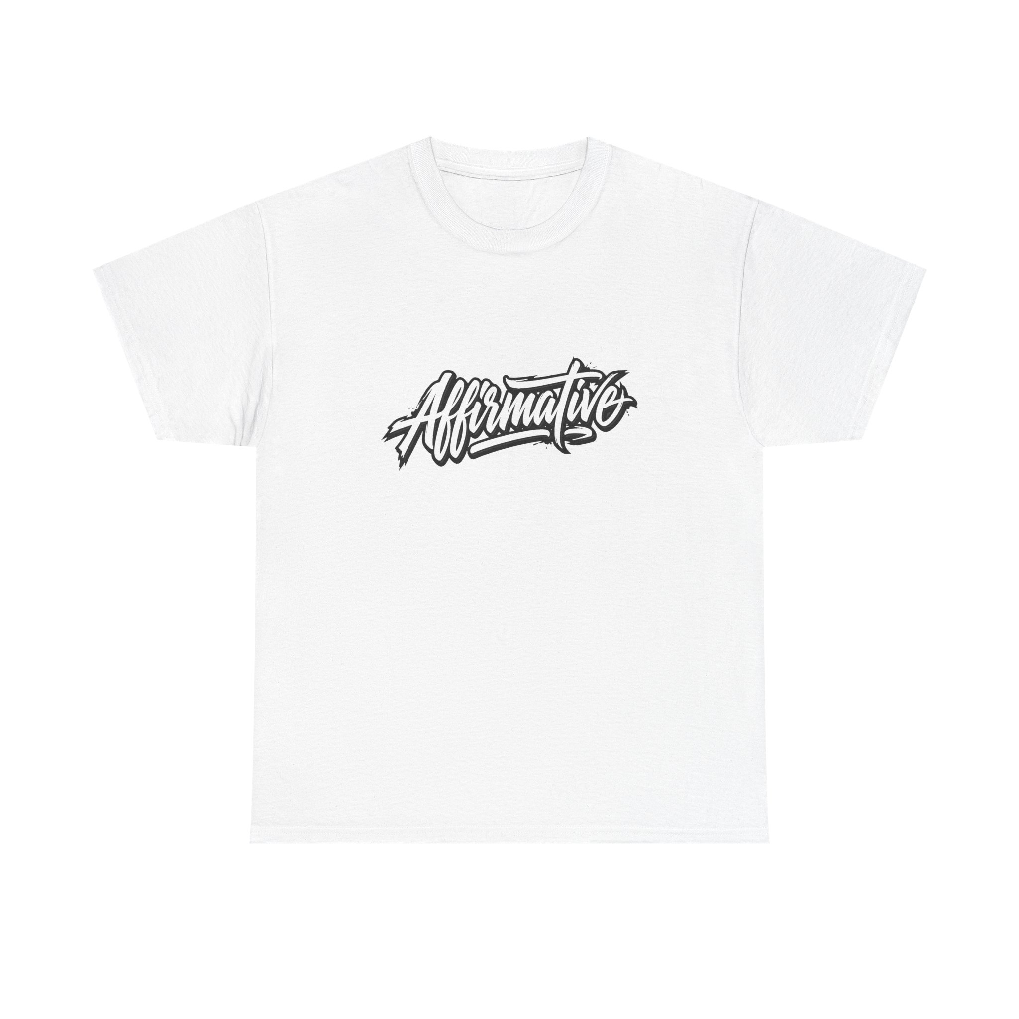This tee carries a calm, confident energy — clean white canvas, bold hand-lettered “Affirmative” across the chest in a modern brush script. It feels like putting on a quiet reminder before you step into the day: steady, intentional, unshowy. Wear it on mornings when you need a nudge to commit to your plans, at casual meetups, or layered under a jacket for low-key evenings. The classic crew neck and relaxed cut let the message sit at chest level, readable without shouting. The shirt’s smooth, substantial cotton holds the print crisply and wears in comfortably over time, so the piece becomes part of your everyday rotation rather than a one-off. Minimalist, slightly streetwise lettering pairs with thoughtful garment details — taped shoulders, ribbed collar, tear-away label — that keep you comfortable while you move through meetings, coffee runs, or weekend walks. For people who prefer subtle statements and steady style, this tee fits naturally into routines centered on clarity, momentum, and small daily wins.
