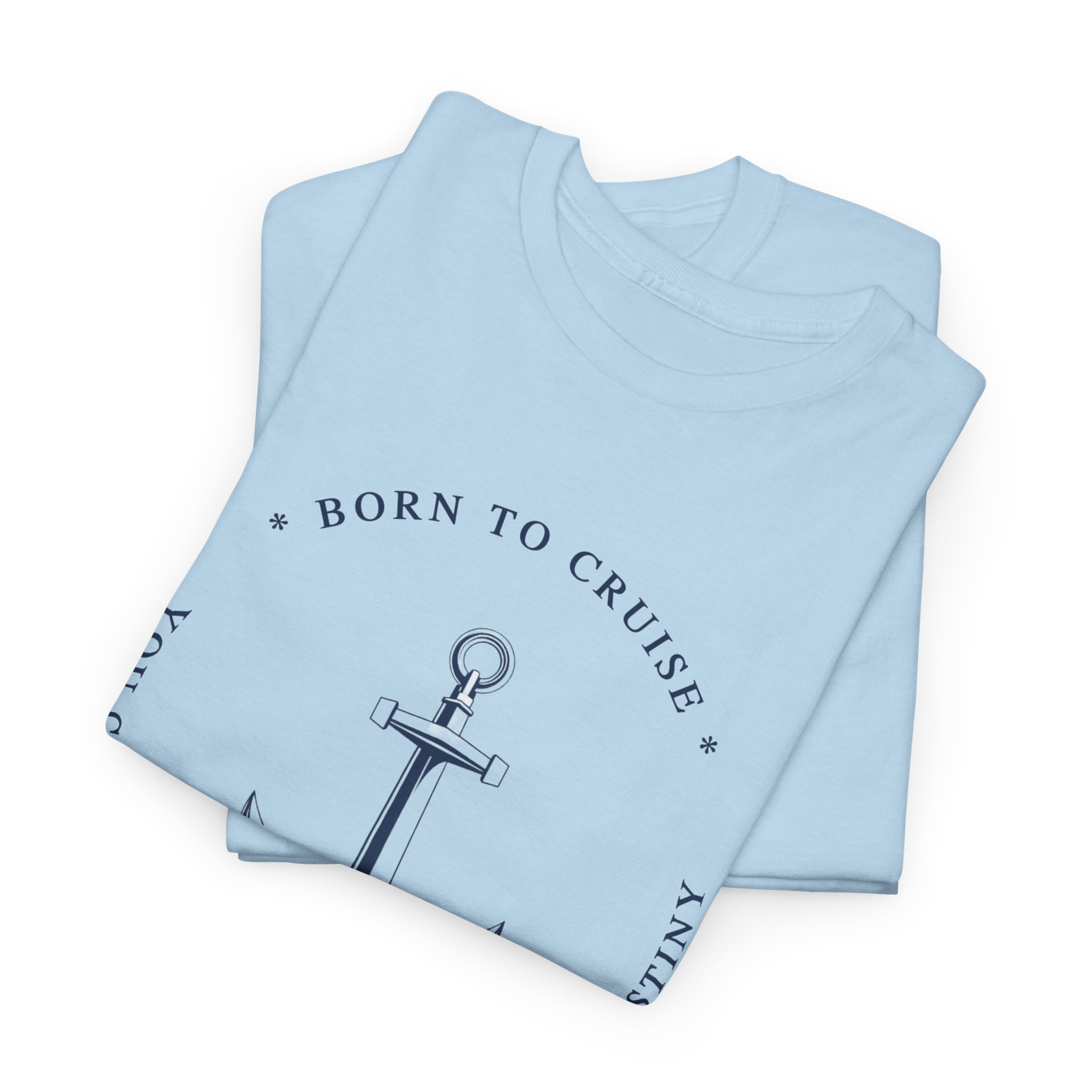 Salt-pressed air, sun on the foredeck, and the steady creak of lines—this soft cotton tee carries a calm maritime vibe for anyone who lives for open water. A finely detailed anchor sits at the center, ringed by the quiet phrase “I was born to cruise. You call it drifting. I call it destiny,” giving the shirt a reflective, sailor’s-heart mood. Wear it on weekend sails, slow harbor walks, or dockside coffee runs. The relaxed crew fit and resilient ribbed collar move with you, while the breathable medium-weight cotton keeps you comfortable through changing sea breezes. Subtle speckling in natural tones and a tear-away label keep the feel uncomplicated and comfortable—like clothing that’s been chosen for its reliability, not its fuss.