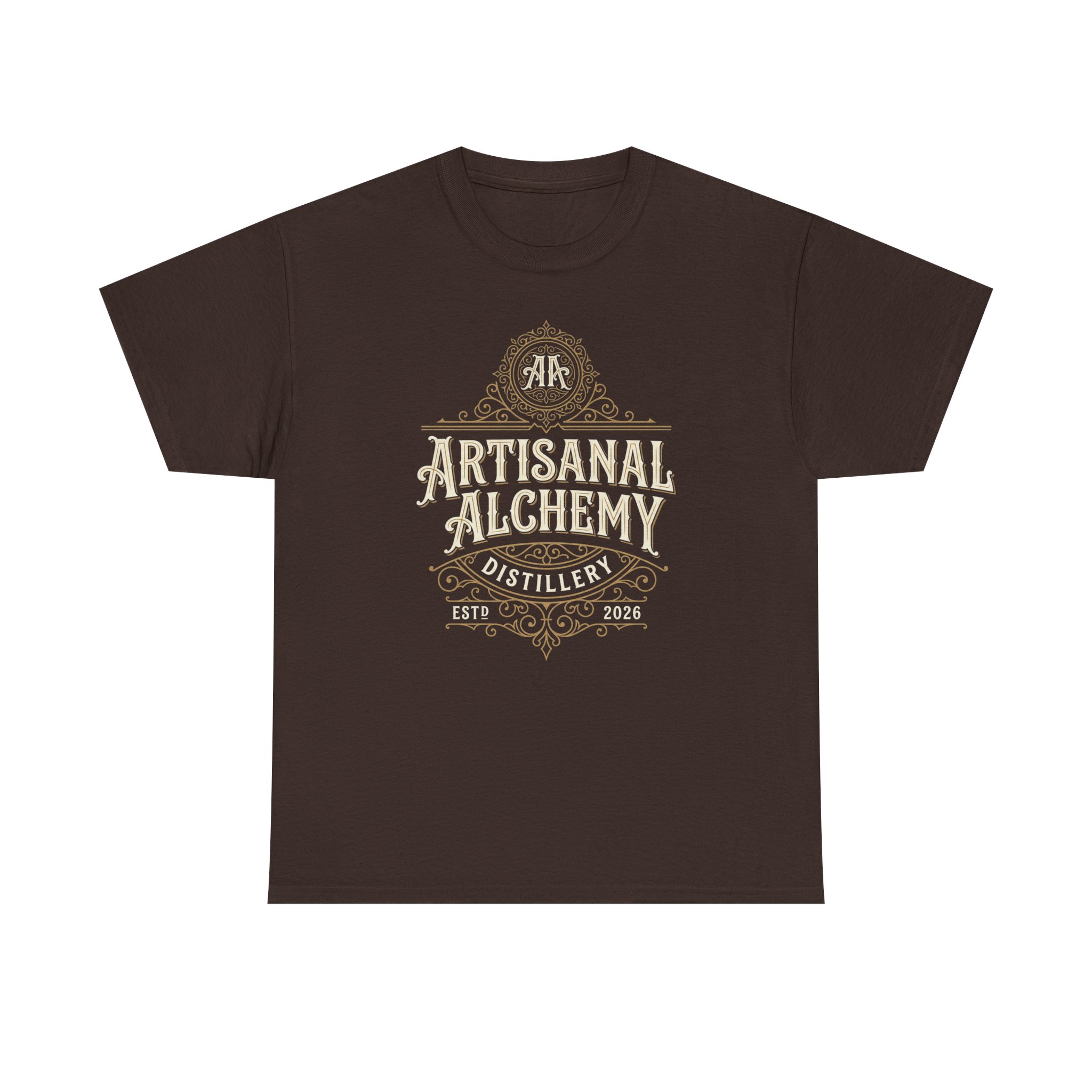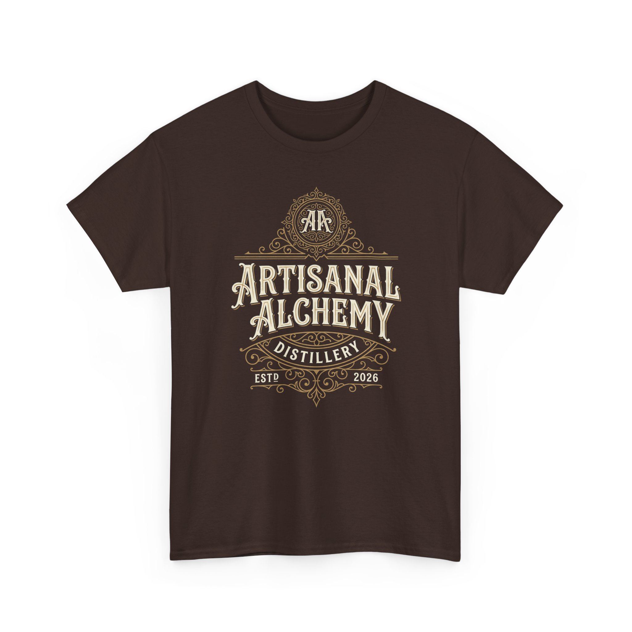 This soft, sturdy tee carries the warm, handcrafted spirit of small-batch distilling. The vintage-inspired “Artisanal Alchemy” crest sits center chest in muted, earthy tones that pair naturally with deep, chocolate fabric. Wear it on slow afternoons at the tasting room, while blending botanicals in your home setup, or out with friends who appreciate craft processes and honest materials. The shirt’s relaxed silhouette and crew neckline let the design breathe without feeling loud — it reads like a well-worn label from an old copper still, comfortable and quietly confident.