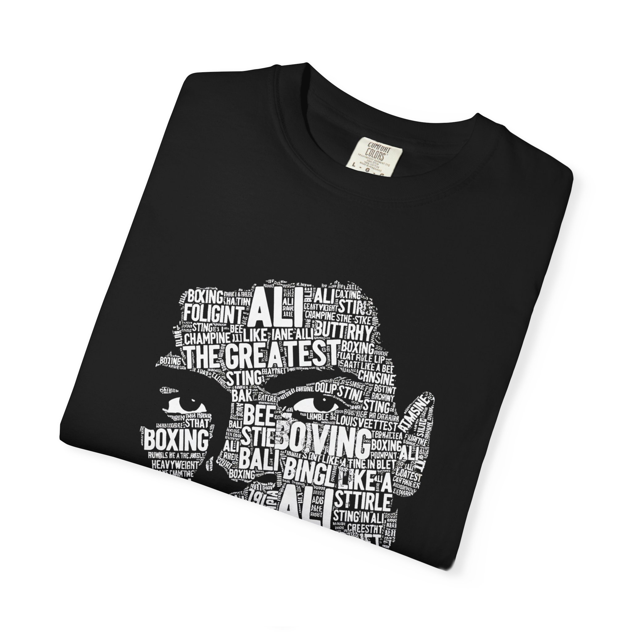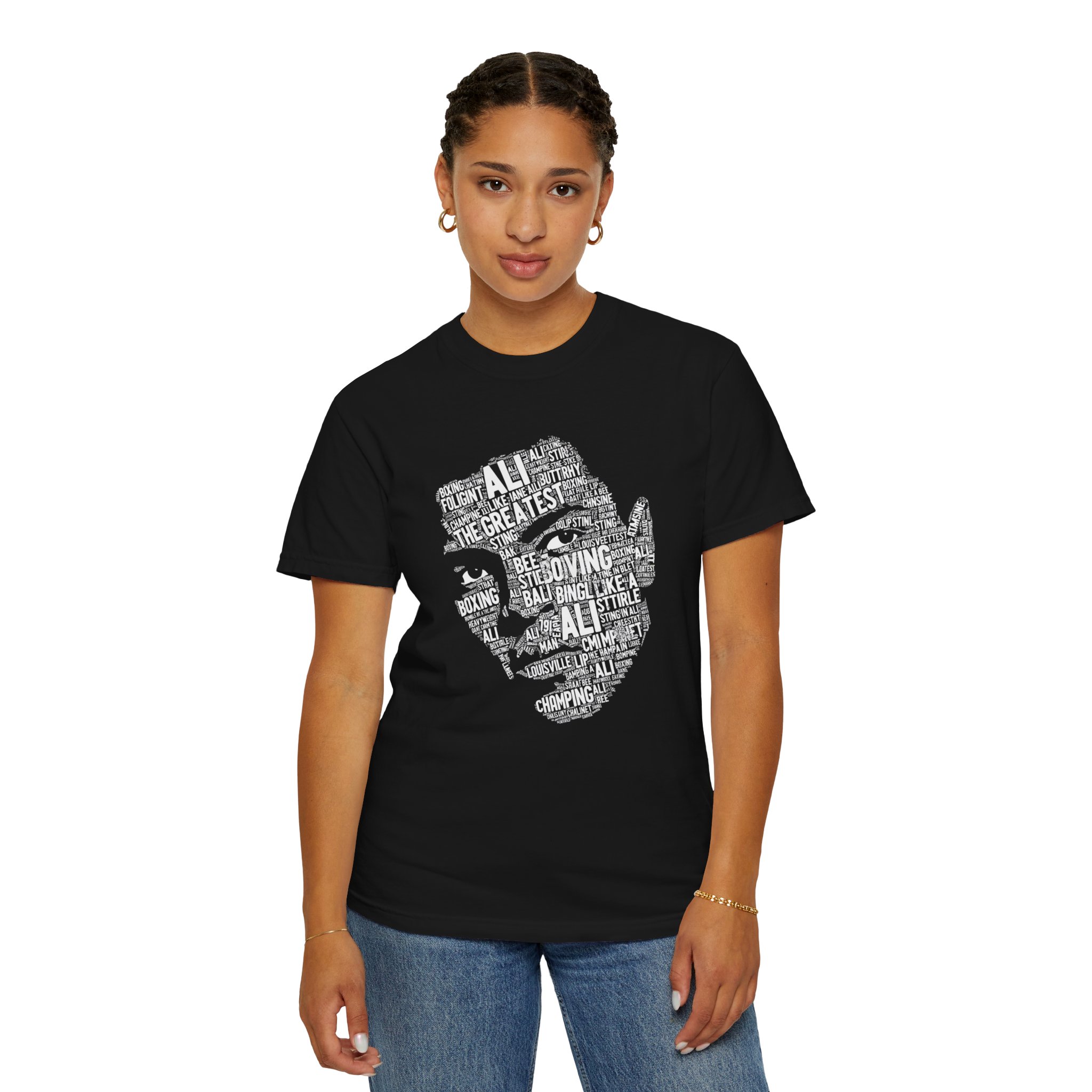 This heavyweight garment-dyed tee carries quiet strength. A bold monochrome portrait—built from layered words—sits on the chest, giving the shirt an artful, statement-making energy without shouting. The relaxed cut and soft, post-dye hand make it feel broken-in from day one; it moves with you to the gym, the corner cafe, or a late-night walk through the city. Wear it with worn denim and a light jacket for a low-key, intentional look that reads as both thoughtful and tough. The sewn-in label and durable double-needle stitching mean the shirt holds its shape and texture through repeat wear and washes.