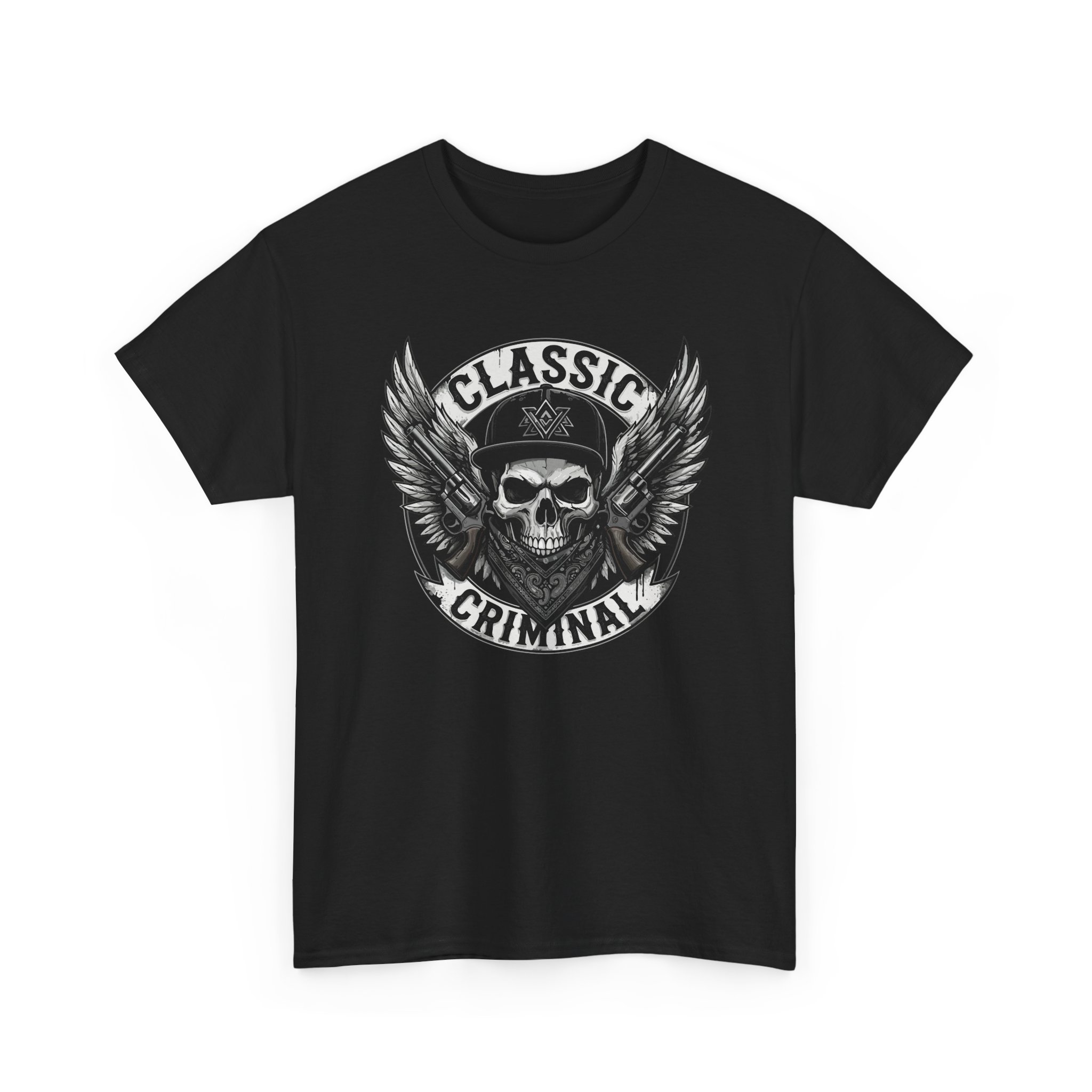Be the first to review “Classic Criminal Skull Tee — Winged Skull Graphic T-Shirt”