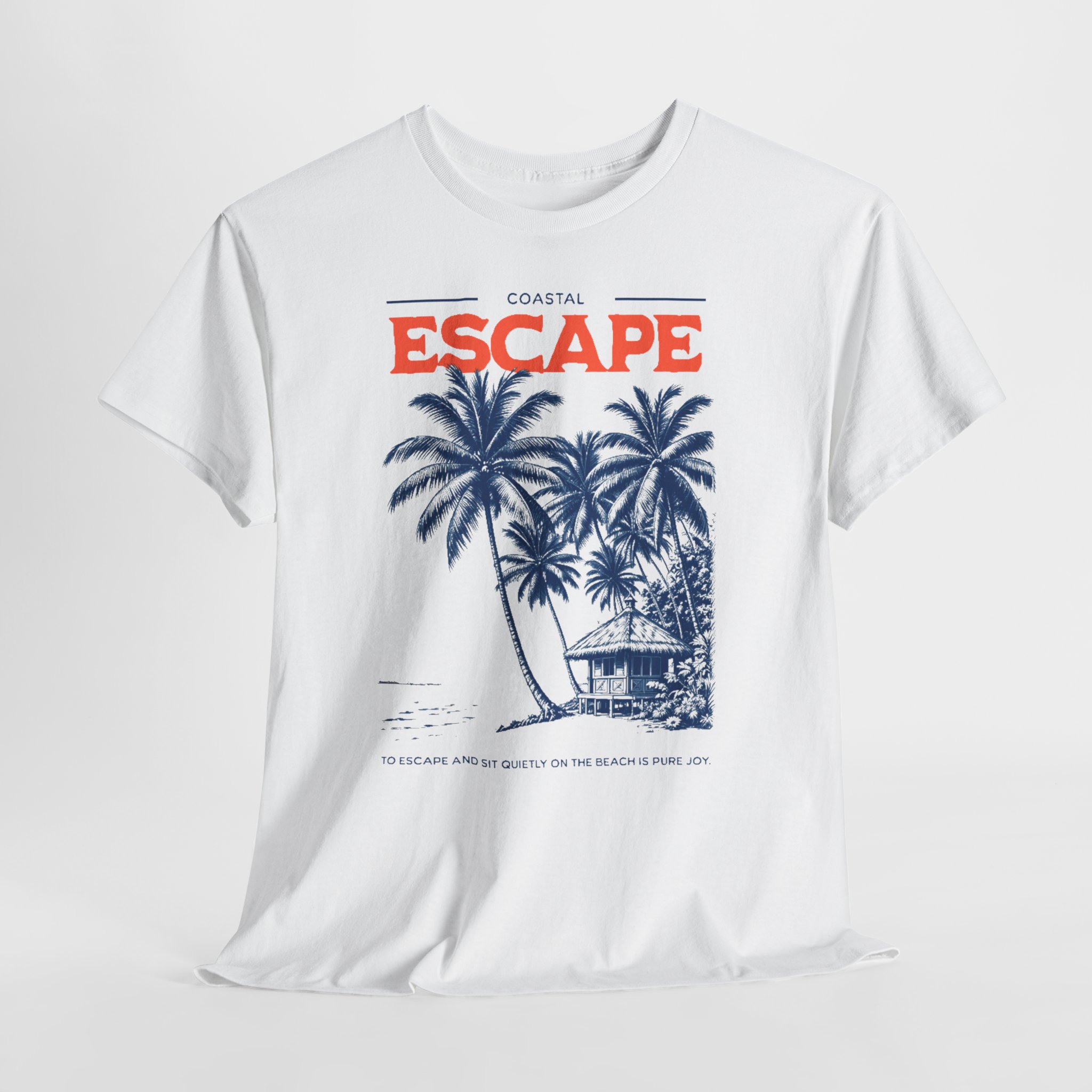 Feel the slow, sun-warmed hush of a coastline afternoon every time you pull this tee on. Soft, durable cotton carries a vintage postcard scene—palm silhouettes, a tucked-away beach bungalow, and bold ‘ESCAPE’ lettering—that nudges you toward sandy walks, iced coffee stops, and easy conversations with friends. The relaxed crew fit and smooth knit keep movement comfortable whether you’re packing for a weekend ferry, wandering a boardwalk, or just stretching out on your porch. It’s breathable, reliable, and carries a lived-in look that blends travel memories with everyday wear.