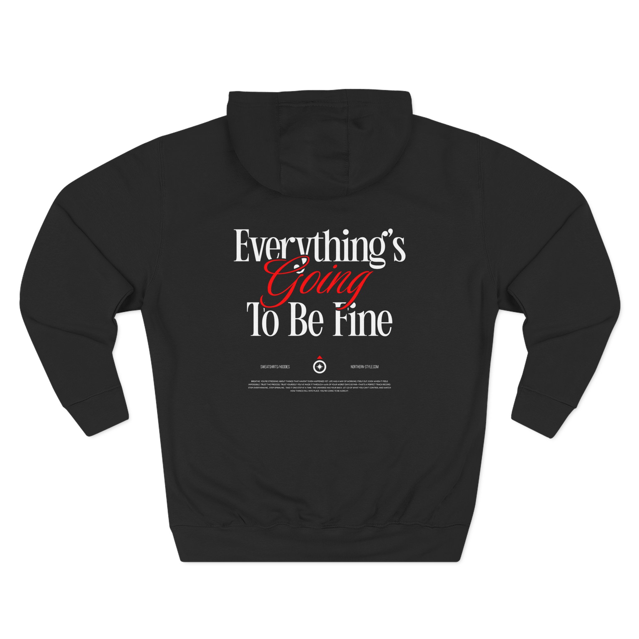 This hoodie carries a quiet, steady reassurance — soft fleece that feels like a warm exhale. The front bears a small, understated chest embroidery while the back displays a bold, typographic message: “Everything’s Going To Be Fine.” It sits roomy without swallowing you, with a structured hood and drawstrings that let you cocoon up when you need it. The kangaroo pocket is deep and comforting, an instant refuge for cold hands or anxious energy. Built from a durable ring-spun cotton blend with a soft 3-end fleece interior, the garment holds its shape and keeps that lived-in softness wash after wash. Choose this hoodie when you want clothing that speaks calm, supports movement, and looks considered — whether you’re heading to a late-night study session, a slow coffee shop morning, or a quiet walk to clear your head.