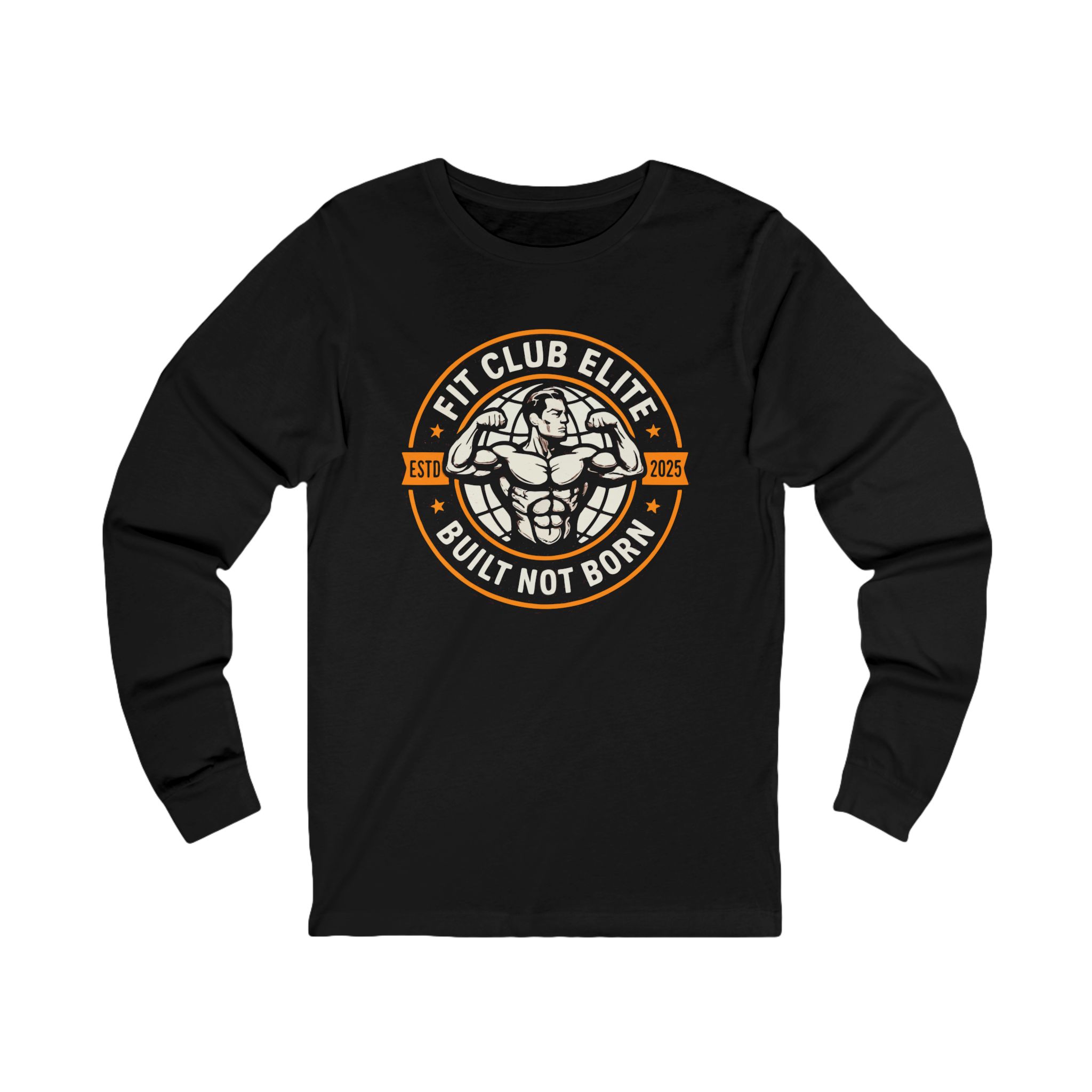 This long sleeve tee is made for lifters and gym regulars who live by grit and consistency. The front features a bold circular emblem with a muscular mascot and the motto “Built Not Born,” giving the shirt a tough, clubhouse vibe. Cut in a lightweight retail fit, the shirt layers easily under hoodies or wears alone for training or errands. Soft, combed ring-spun cotton (varies by color) and a ribbed knit collar keep the neckline comfortable through repeated wear. Shoulder tape and side seams help the tee hold its shape session after session. It’s a straightforward, no-frills piece that reads athletic and earned — the kind of shirt you reach for after a heavy week and on days you want to show your work ethic.