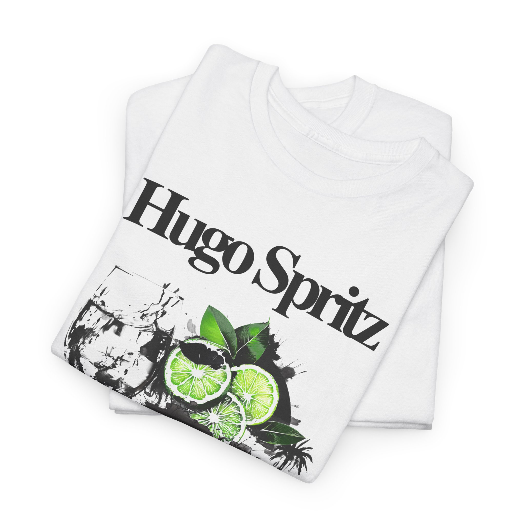 This relaxed cotton tee wears like a memory of sunlit patios and late-afternoon drinks. A soft white canvas carries a vintage-inspired Hugo Spritz design—lively lime slices, a bubbly cocktail glass, and painterly splashes—so the shirt reads like a snapshot from a seaside café. Lightweight but sturdy, it drapes casually over the shoulders and keeps its shape through washes. Wear it on warm evenings, to brunches with friends, or whenever you want to carry a small reminder of easy, spirited gatherings.