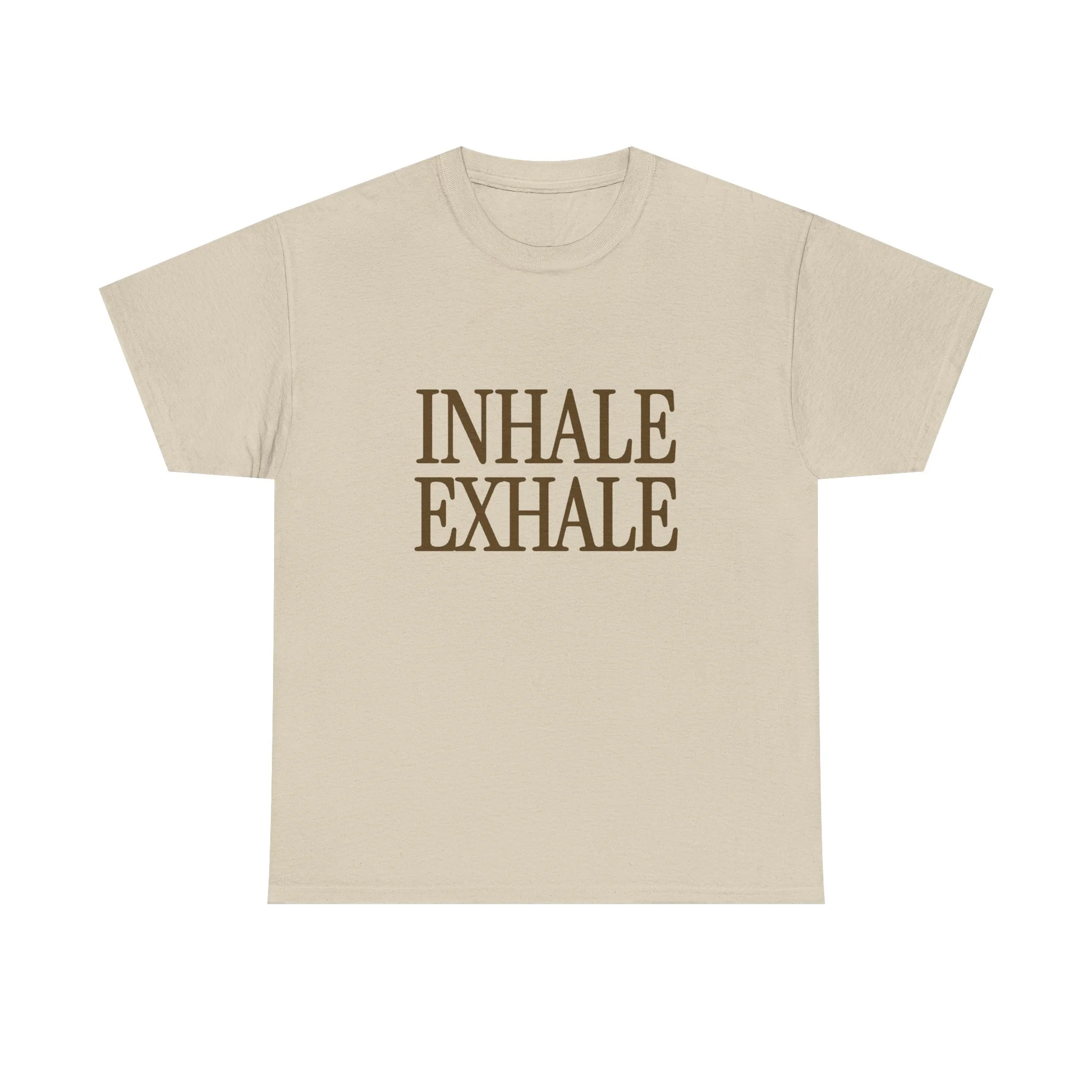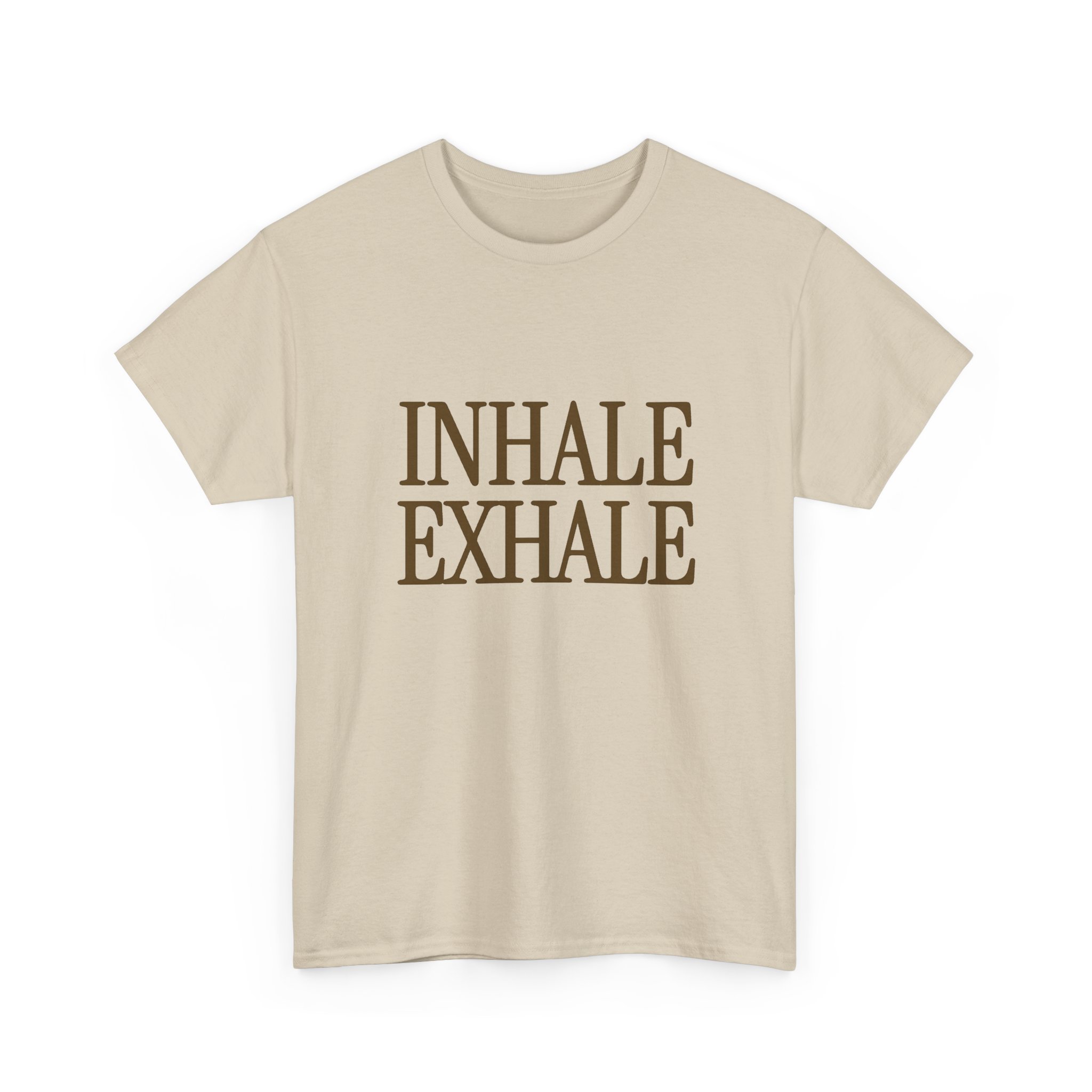 Soft, calm, and quietly confident — this tee carries a gentle reminder to breathe. The warm natural tone and understated serif lettering create a vintage, grounded look that slips seamlessly into slow mornings, mindful afternoons, or relaxed walks outdoors. Wear it when you want to steady your pace, anchor your thoughts, or share a subtle cue of calm with others. The relaxed crew silhouette and tear-away label keep comfort front and center, while the durable cotton holds its shape and print through regular wear. It feels familiar from the first pull-on, becoming a simple ritual piece in routines that value presence and ease.