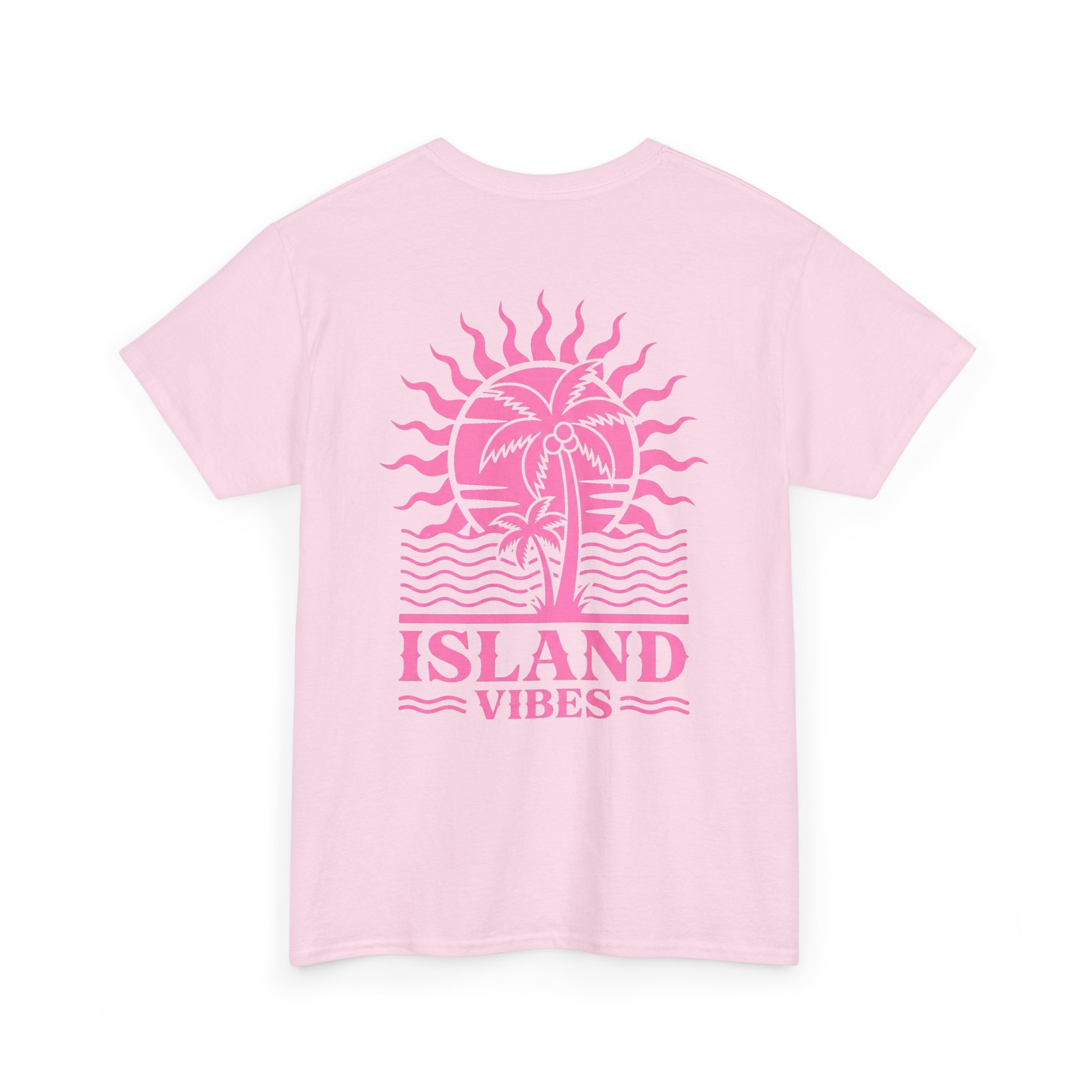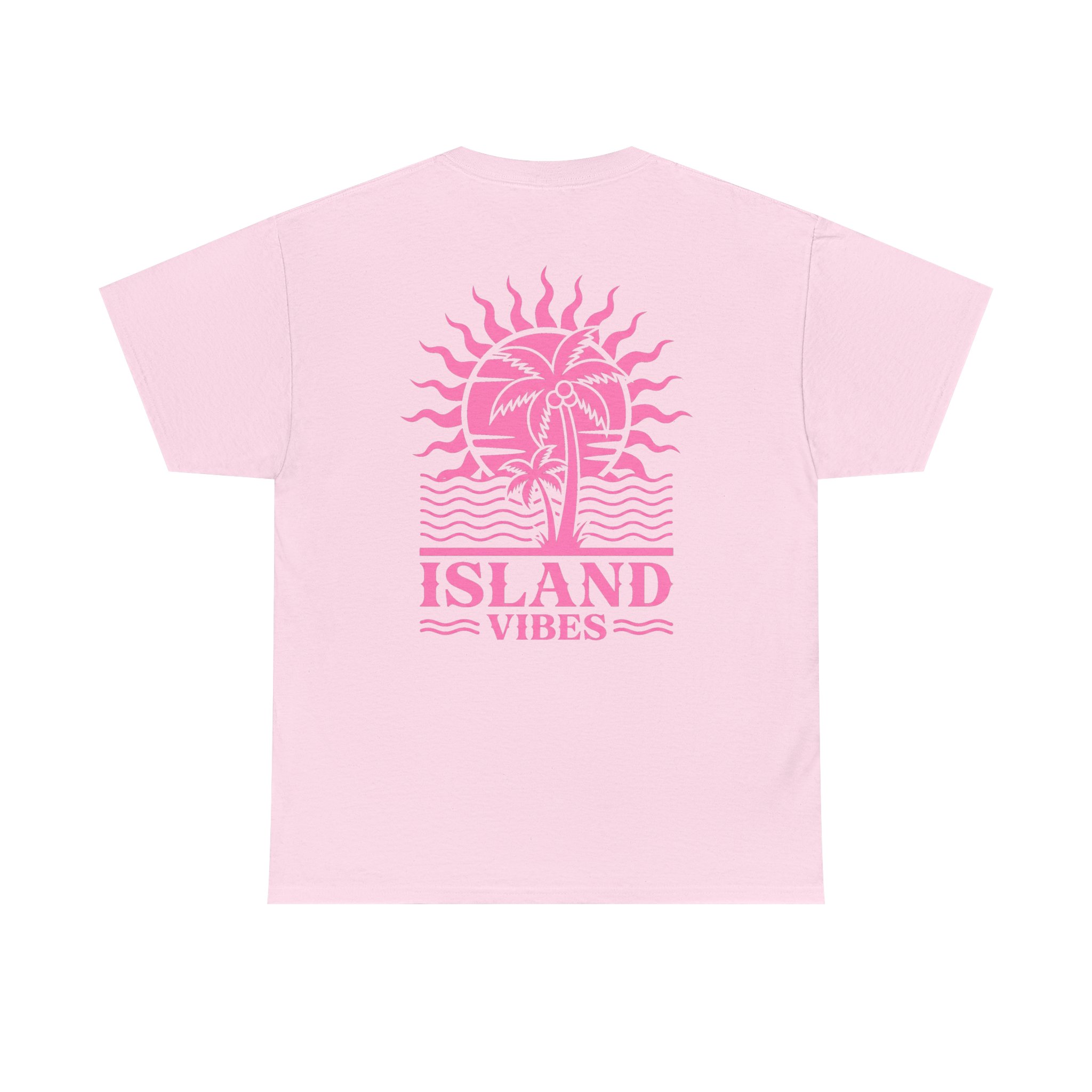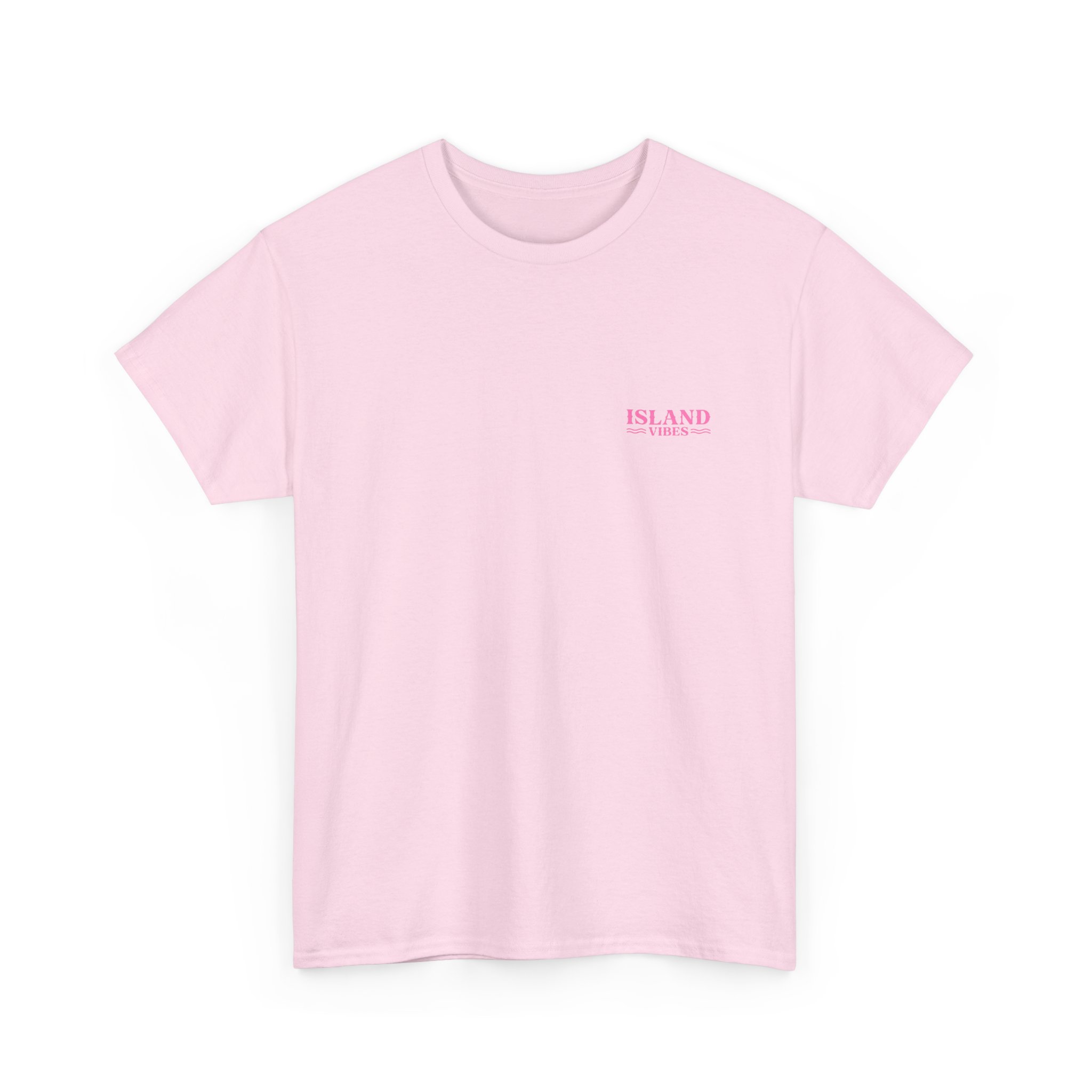 Soft, sun-washed, and easy to live in — this tee carries a relaxed island energy. The light pink cotton offers a gentle canvas for the warm pink artwork: a retro palm-and-sun motif on the back and a small chest logo up front. Wear it for slow mornings with iced coffee, seaside walks, or evenings around a fire pit. The roomy classic fit and crew neck feel familiar from the first wear, while the sturdy midweight cotton holds up through repeated washes. Simple, breezy, and quietly nostalgic — it slips into a vacation mindset wherever you are.