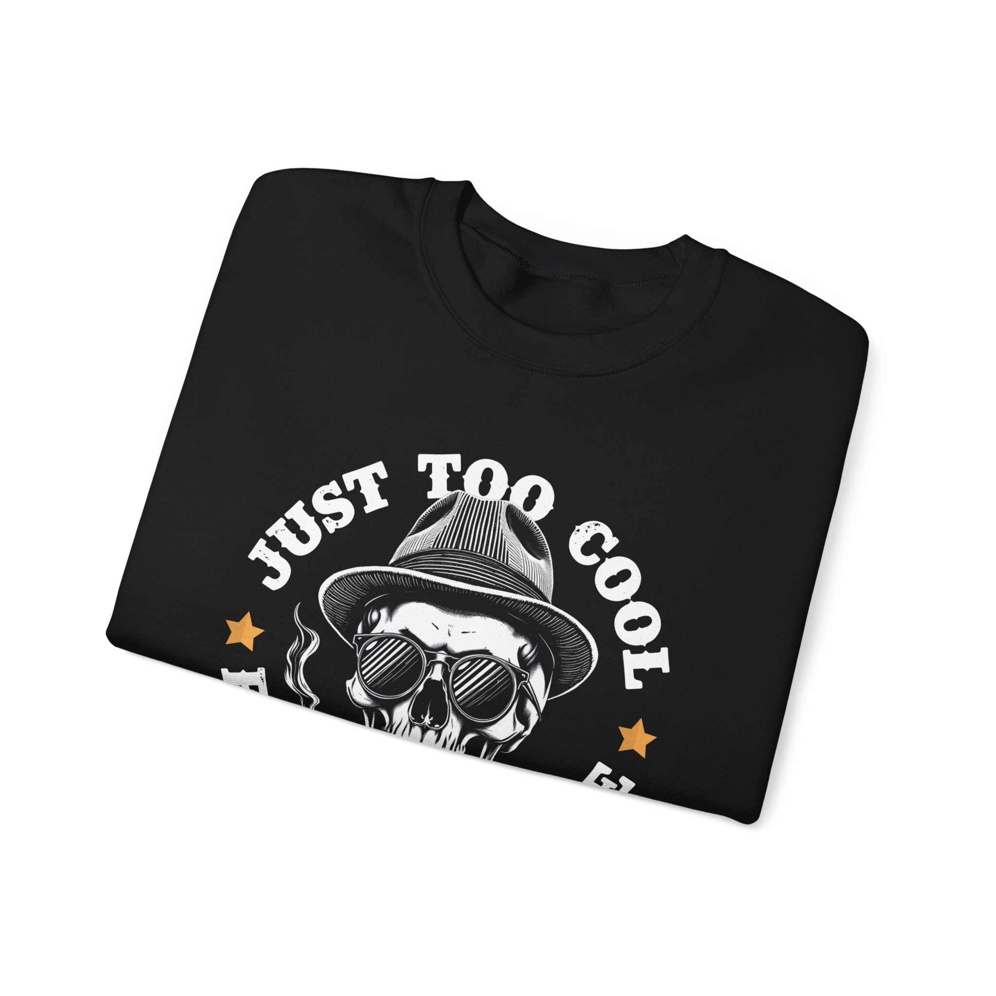 A laid-back, slightly mischievous crewneck that wears like a well-loved companion. Midnight black, midweight fabric and a clean crew neckline set the stage for a bold skull motif—wearing a fedora and coolly lighting a cigarette—circled by the curved slogan “Just Too Cool For The Grave.” It reads like a wink to the confident, irreverent person who prefers attitude over polish. Layer it over a band tee, throw it on after a late ride, or keep it by the door for evenings out. The soft, durable blend keeps its shape through wash-and-wear life while subtle embroidered and printed label details give it a handcrafted touch. For folks who value personality and comfort, this sweatshirt becomes a quiet statement piece that ages well with memory and wear.