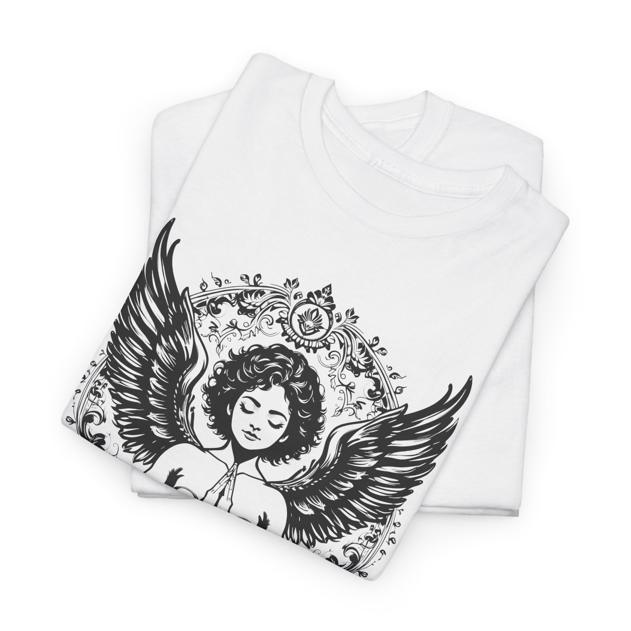 Soft, breathable, and built to last — this classic tee carries a calm, sacred energy. The front features a detailed black-and-white illustration of a meditative figure with wings and ornamental mandala accents. It reads like wearable art: quiet, spiritual, and a little rebellious. Wear it to your yoga class, on a slow morning walk, or layered under a jacket for a mindful city commute. The relaxed crew neck and classic fit let the artwork sit front-and-center without feeling tight or fussy. Thoughtful construction — from shoulder tape to a ribbed collar and tear-away label — keeps the focus on comfort and the moment you want to hold. Ethically sourced cotton and reliable printing methods mean the image stays crisp wash after wash, so the intention behind the design can keep showing up in your day.