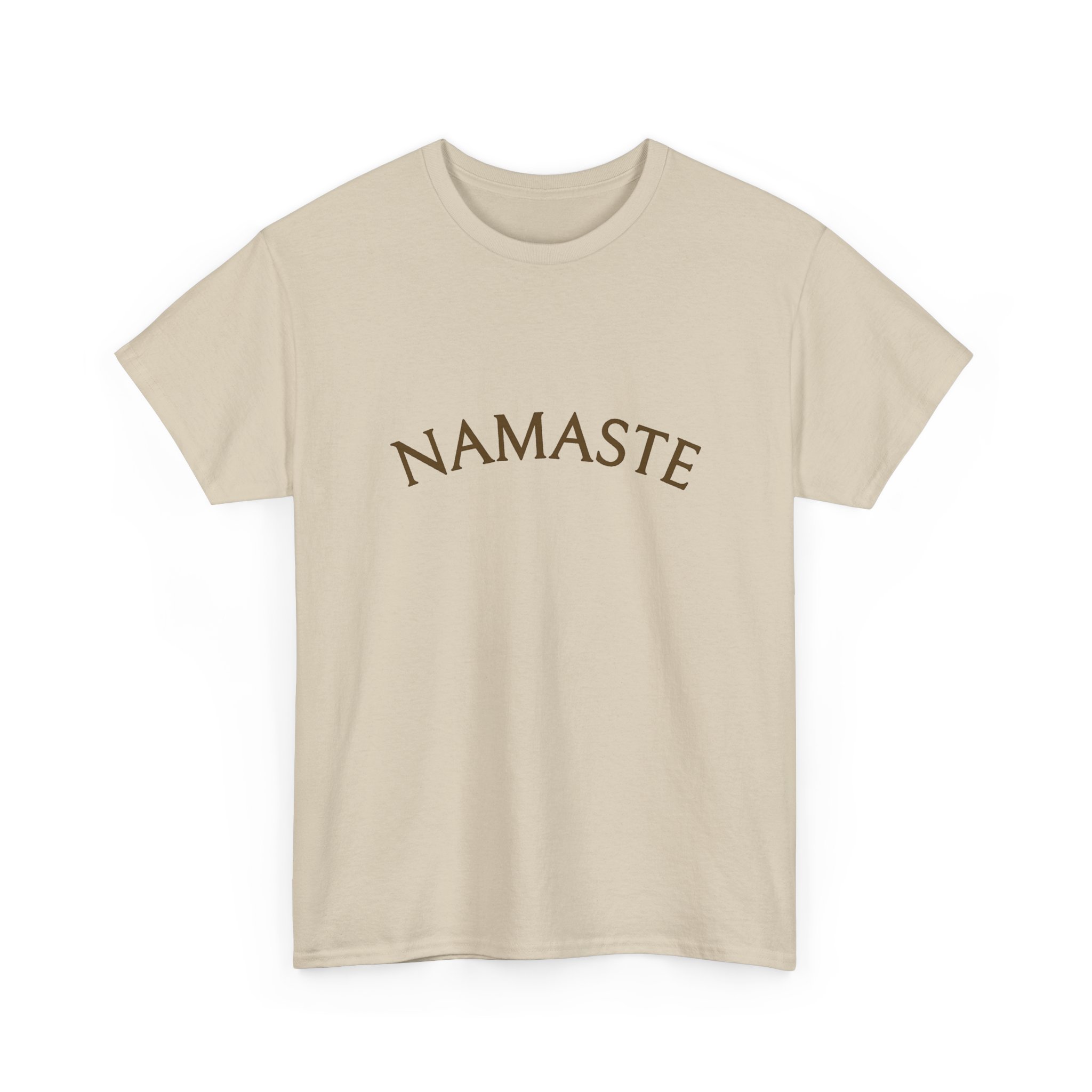 Soft, timeless, and quietly mindful — this tee carries a calm presence. The natural, unprocessed cotton color and subtle flecking give it an organic, lived-in look that pairs with yoga mats, morning coffee, or slow walks. The arched “NAMASTE” print sits gently across the chest, not loud but clearly present — a small reminder to breathe and bow to the moment. The classic crew neck and relaxed cut let it layer easily under a cardigan or stand alone during a sunlit meditation circle. Made to feel familiar from the first wear, it becomes part of a daily ritual rather than just clothing.
