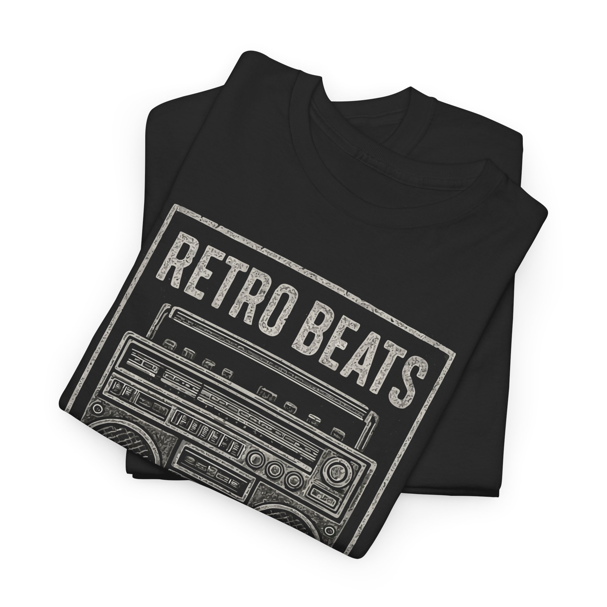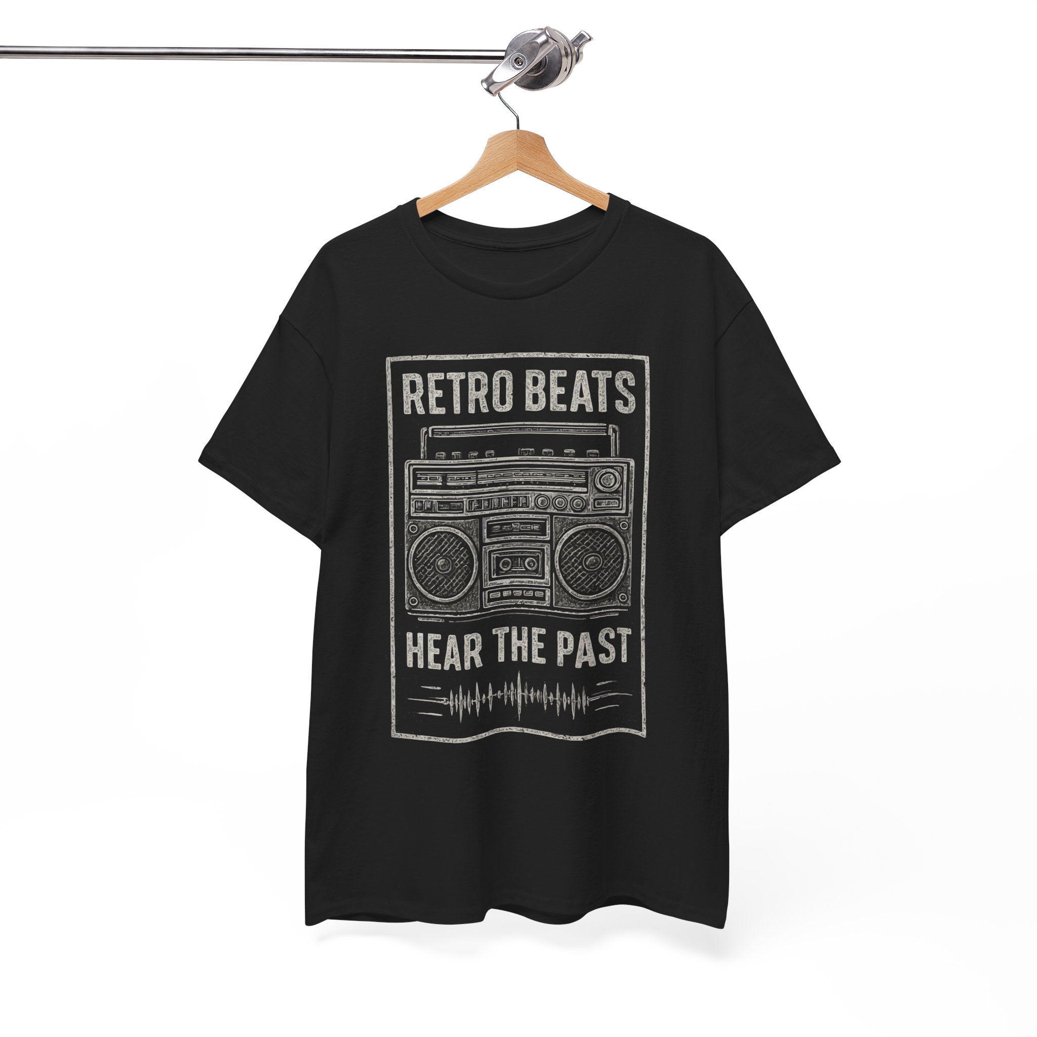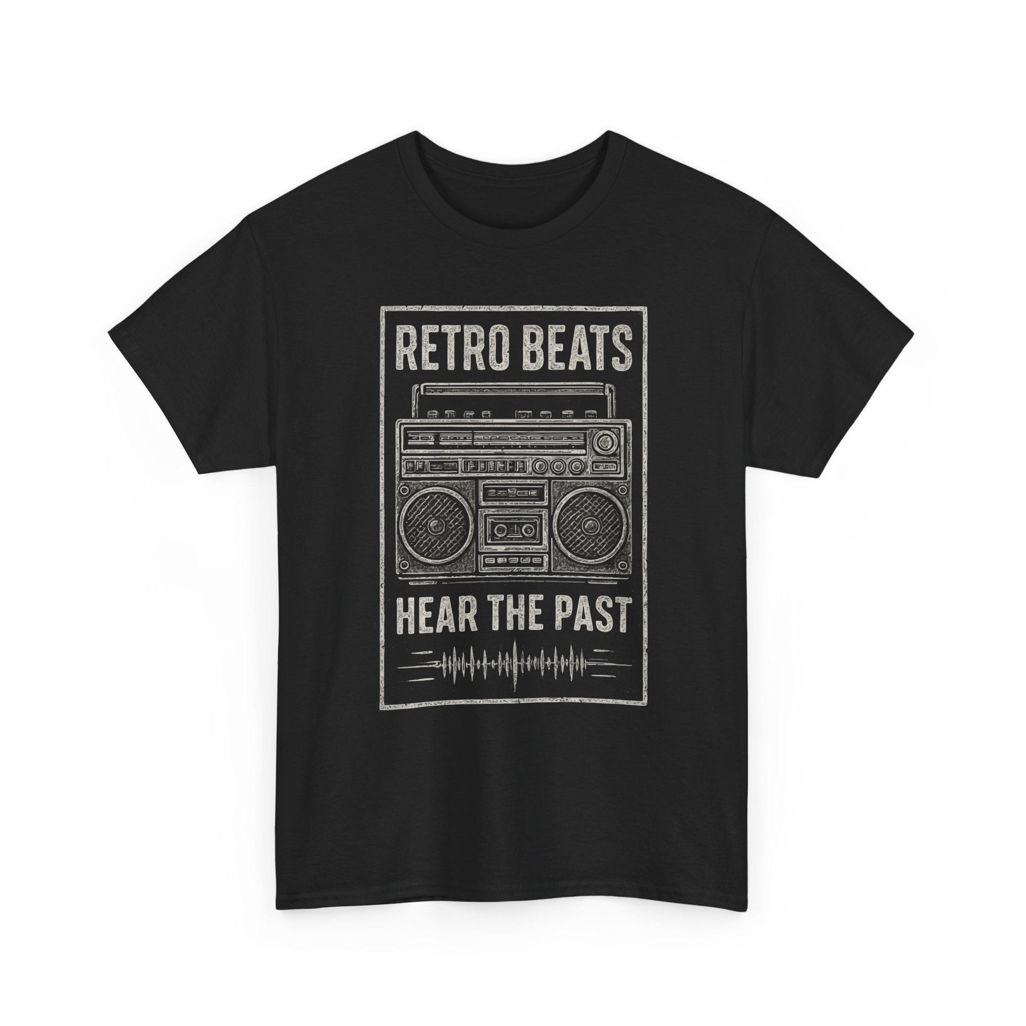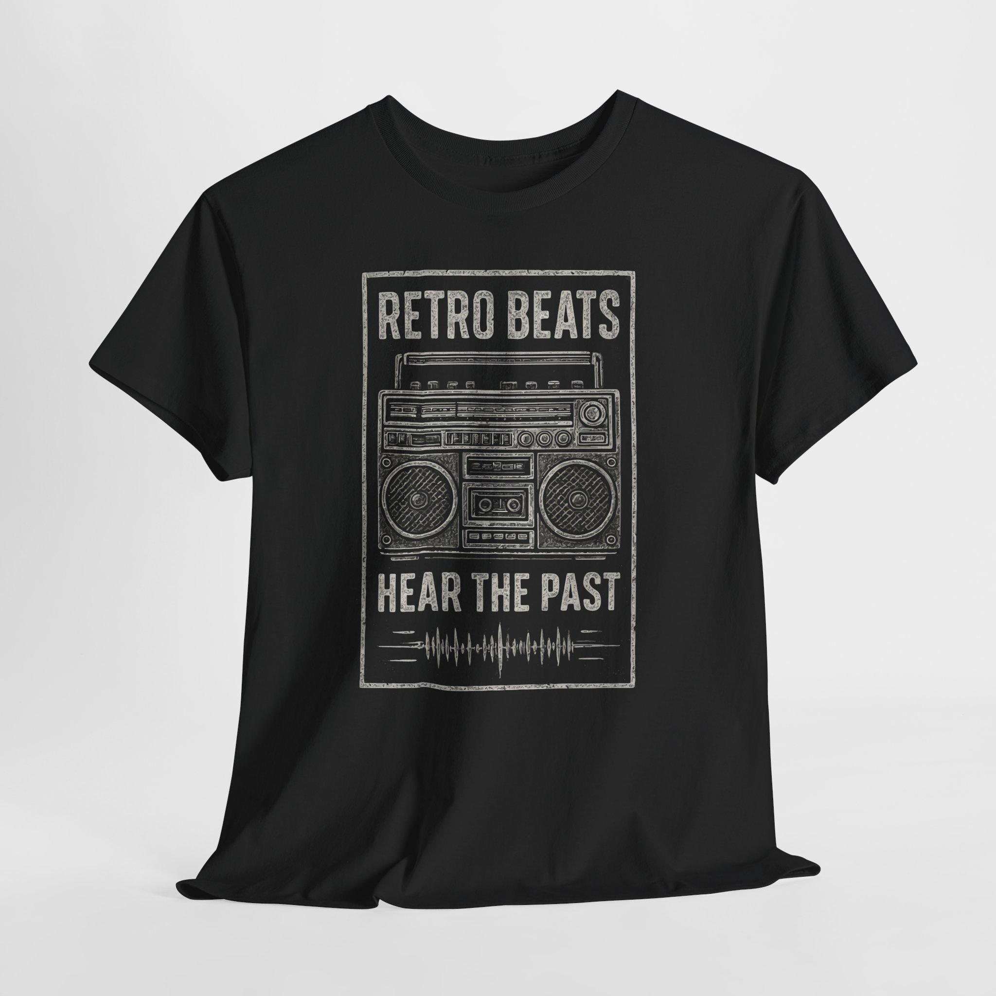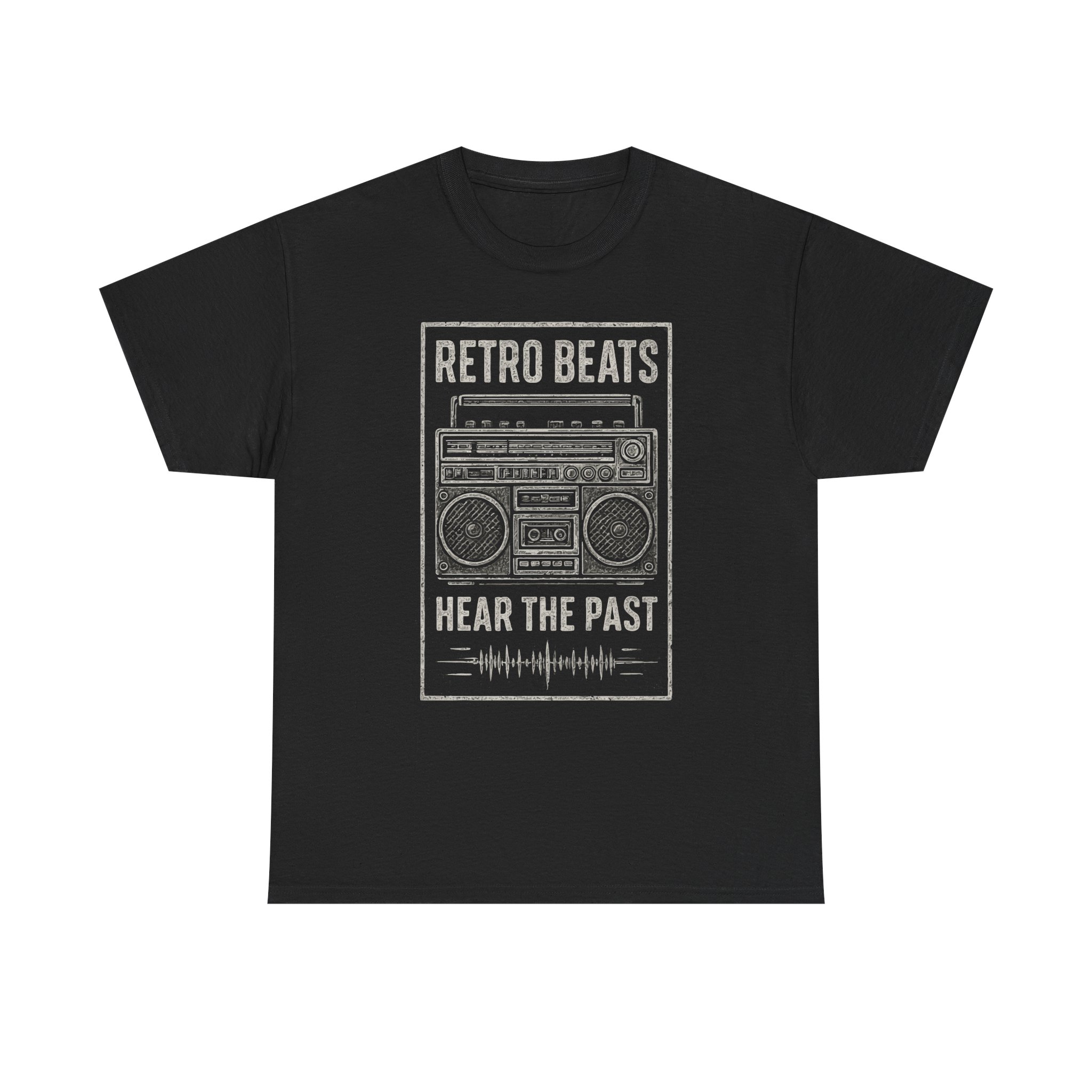 This classic cotton tee carries a worn-in, retro vibe that feels like flipping through an old mixtape. The front features a distressed boombox graphic with the words “RETRO BEATS” and “HEAR THE PAST,” rendered in muted tones that sit naturally on the black fabric. It’s comfortable and breathable for long days at gigs, record-hunting trips, or low-key nights with friends. The relaxed cut and crew neckline make it easy to layer under a denim jacket or pair with vintage sneakers. Wear it when you want your look to nod to music history without shouting — familiar, tactile, and effortlessly lived-in.