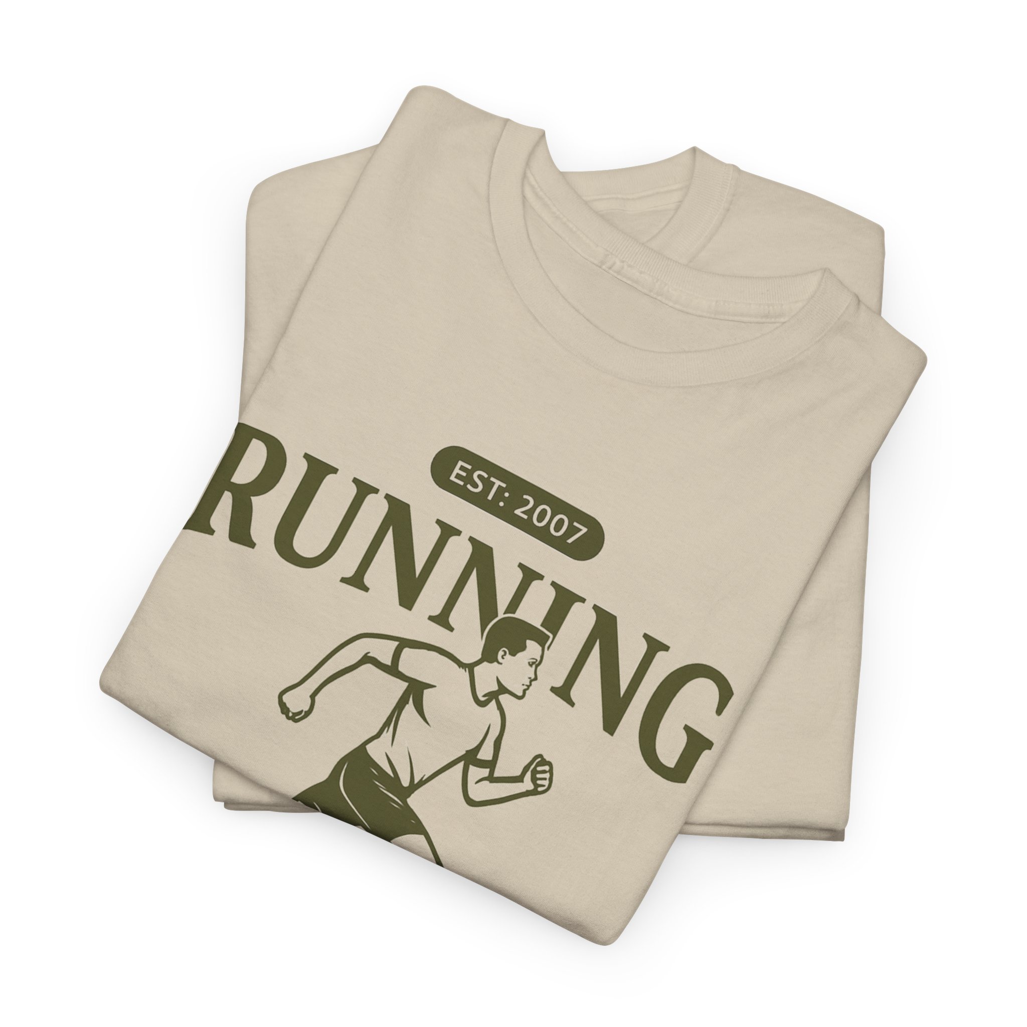 Lightweight yet sturdy, this classic cotton tee carries a vintage running-club design that feels like a badge of early morning miles and community trails. The muted natural base and olive-green artwork give it an easy, lived-in look that layers well under a vest or pairs cleanly with training shorts. Wear it to group runs, post-workout coffee, or weekend errands — it settles into your routine and keeps the focus on the miles, not the gear. Breathable, soft, and built to keep its shape, it ages into a favorite you reach for when you want something familiar and quietly proud.