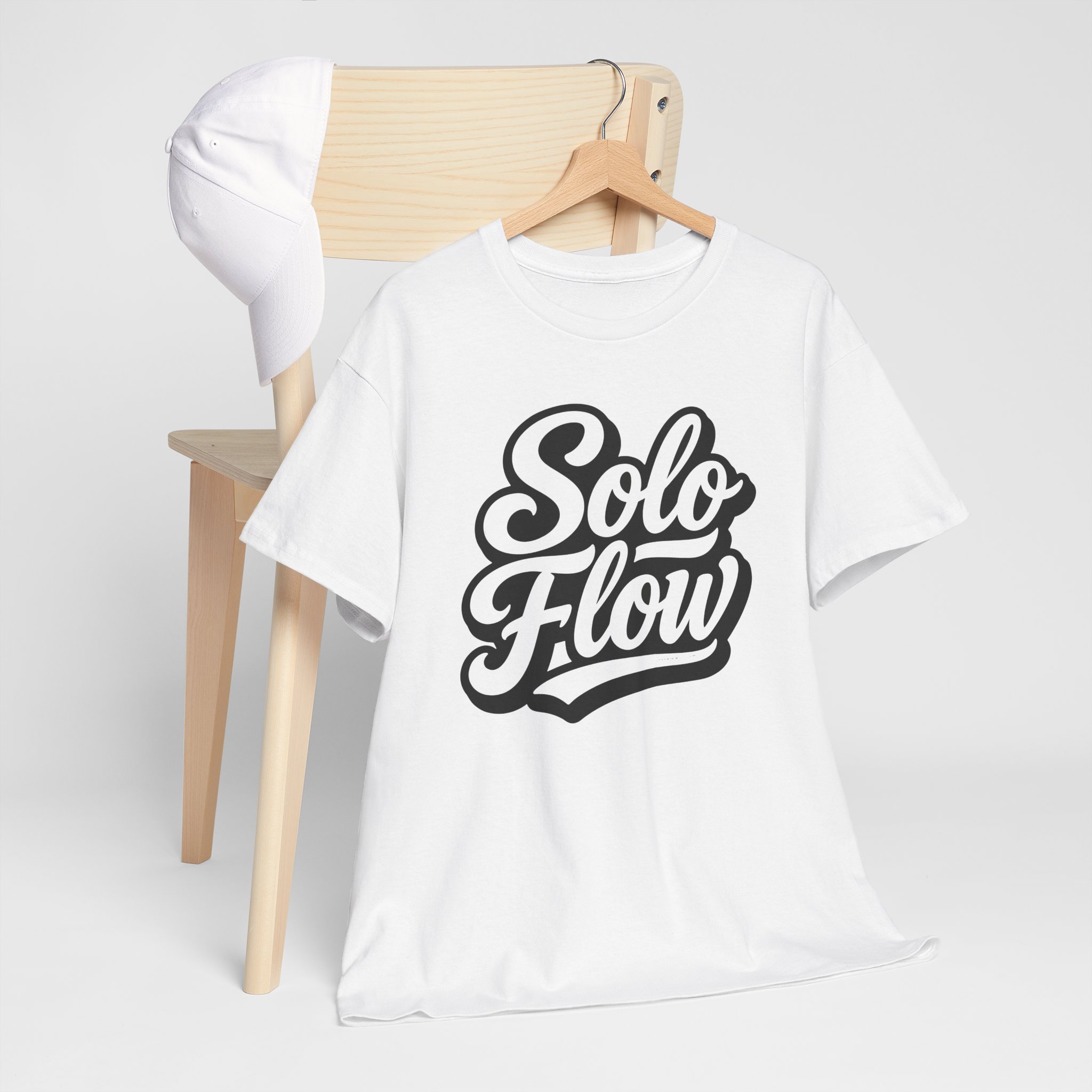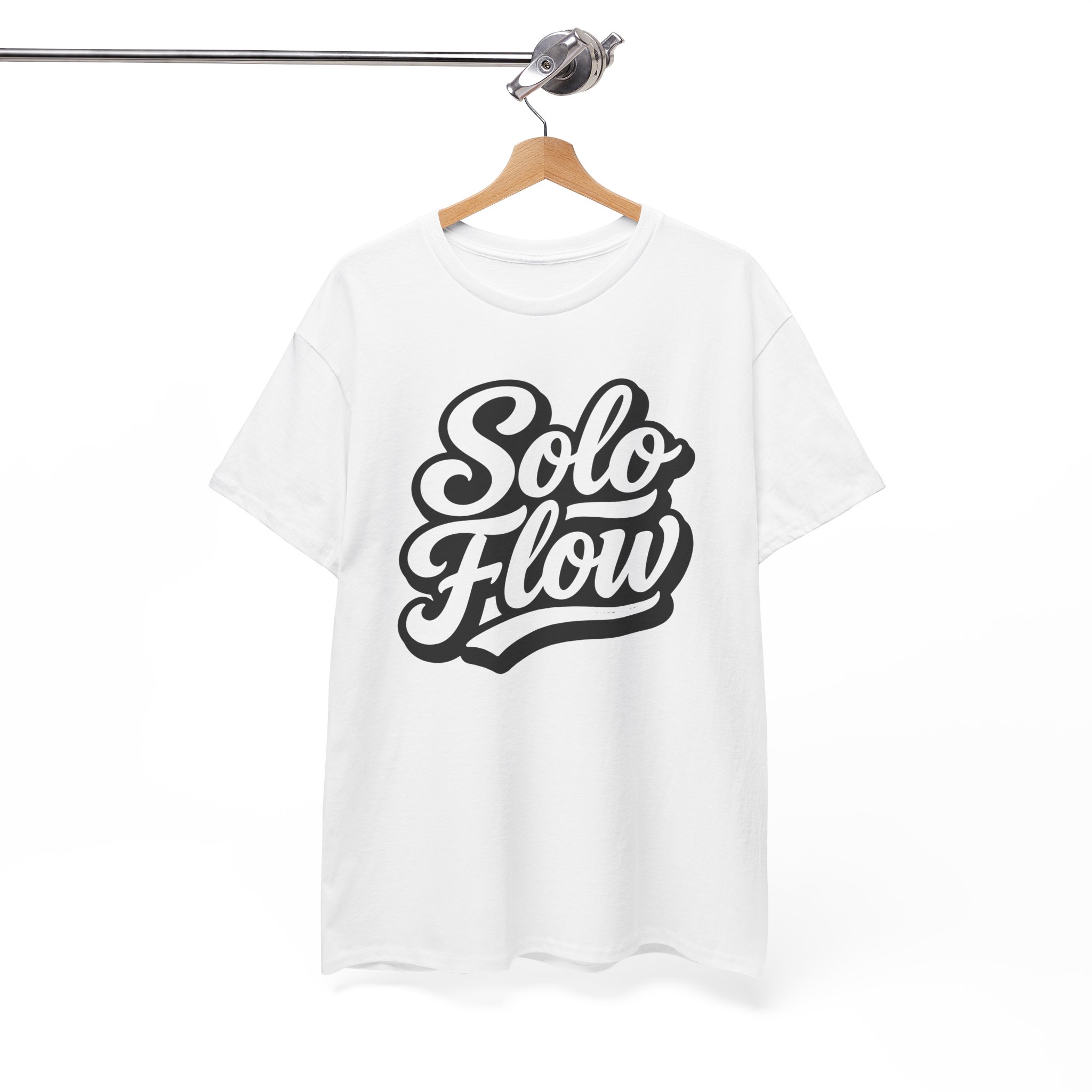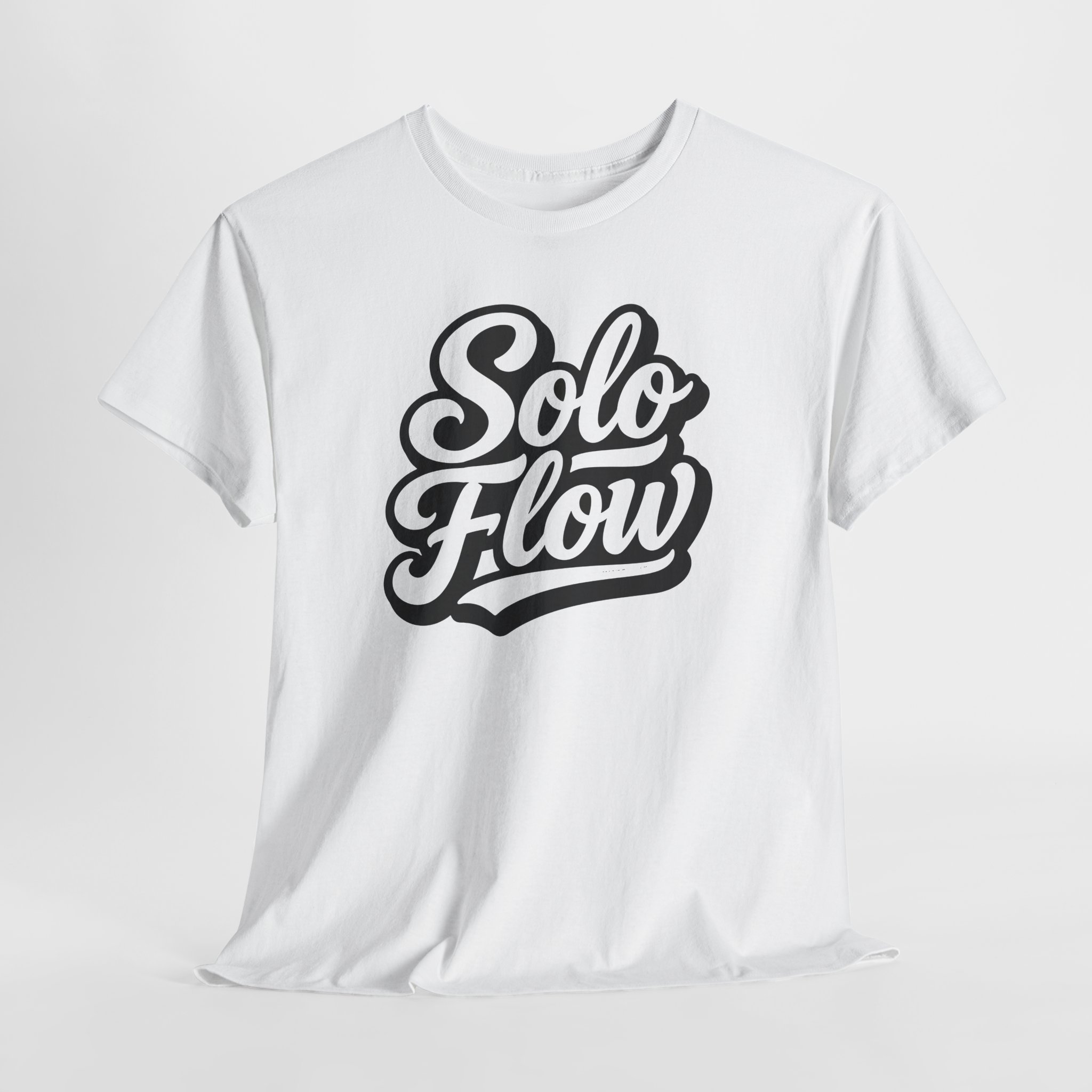A soft, breathable tee designed around a bold “Solo Flow” script — it feels like a quiet confidence you can wear. The midweight 100% cotton body holds its shape while letting air circulate, and the clean crew neckline and classic fit create an easy, lived-in silhouette. Subtle vintage-style lettering sits centered on the chest, making a calm statement without shouting. Wear it on solo city walks, studio sessions, or low-key hangouts; it layers smoothly under jackets or stands on its own when you want something simple and expressive. Ethically sourced cotton and a tear-away label keep the experience comfortable and conscientious.