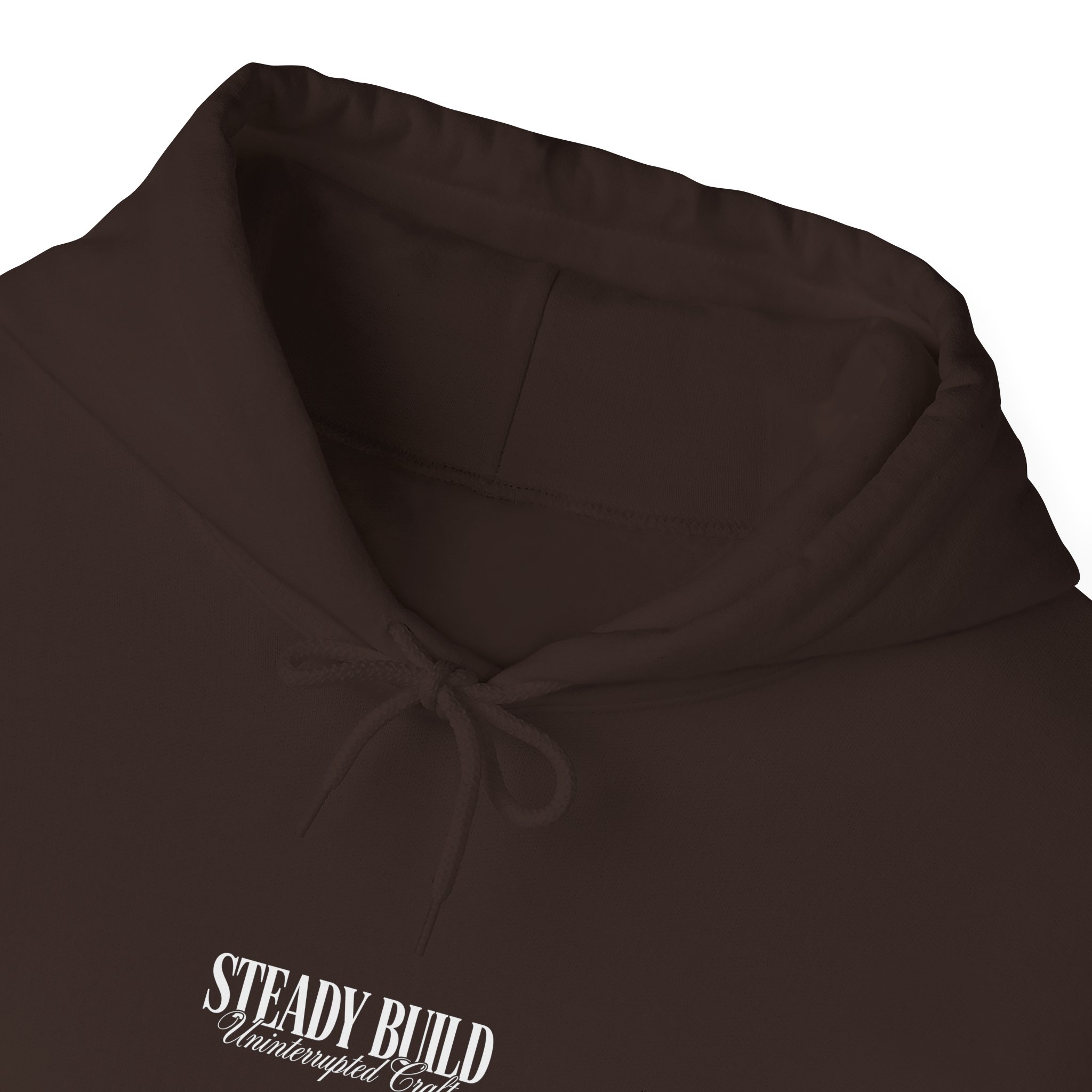This warm, roomy hoodie is built for slow, steady days—the kind where focus and craft matter more than noise. A deep chocolate base carries crisp, vintage-inspired white lettering: a small chest logo up front and a bold, type-driven design across the back that reads like a quiet statement. It settles around your shoulders without fuss, the double-lined hood and color-matched drawcord finishing the look. Wear it while sketching, sanding, or settling in with a cup of something strong; the pocket keeps hands warm and the mid-weight fabric holds heat without feeling bulky. Subtle but confident, it fits into a maker’s routine and feels like an extra pair of steady hands.