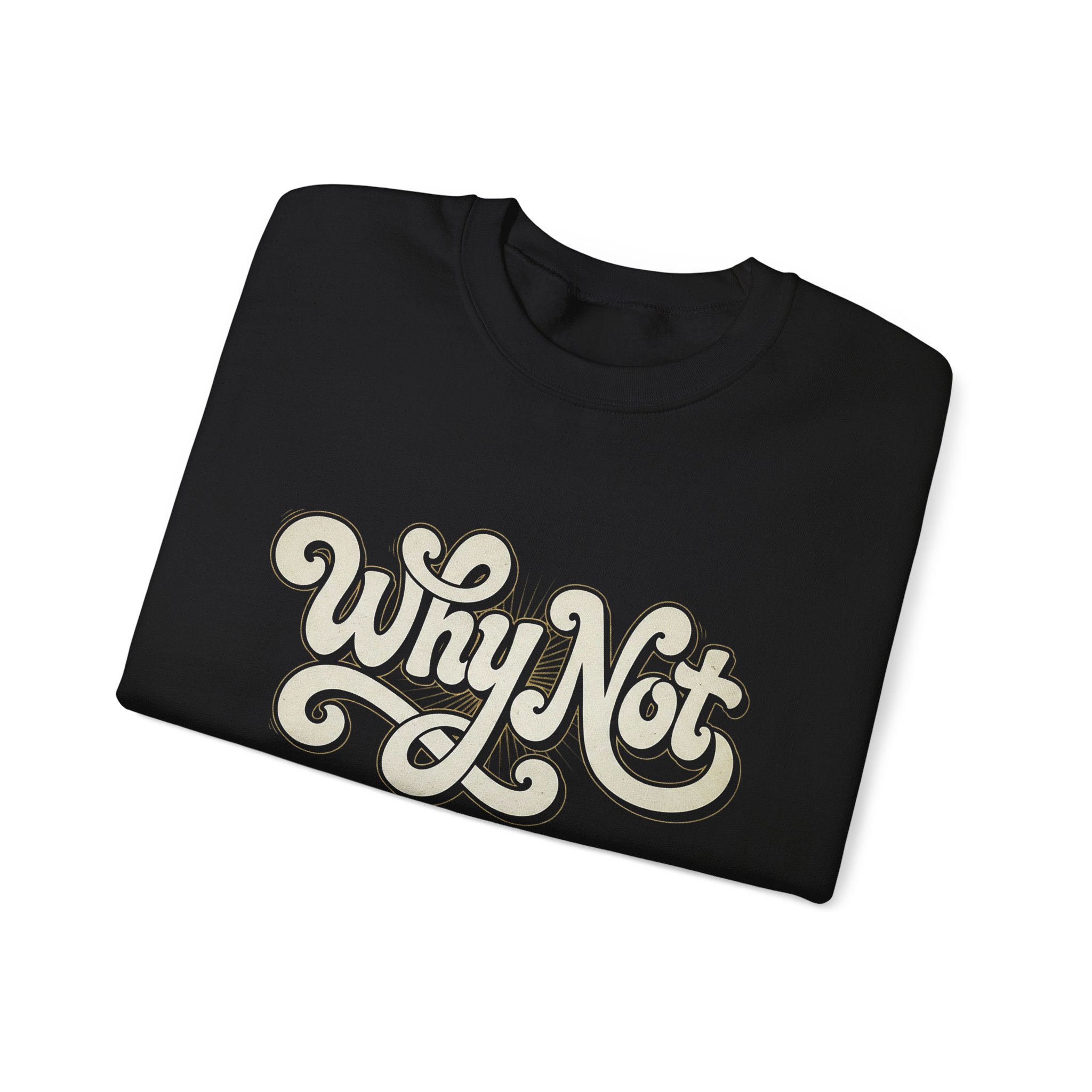 This cozy crewneck sweatshirt carries a hand-lettered “Why Not” motif that feels like a quiet nudge to try something new. Thick but breathable midweight fabric wraps you in comfort while the ribbed collar and cuffs hold shape through repeated wear. The soft black backdrop makes the cream, slightly raised script pop with vintage warmth—casual enough for daily wear, confident enough to spark conversations. Slip it on for slow mornings with coffee, late-night drives, or creative sessions when you need a gentle push to do the thing you’ve been thinking about.